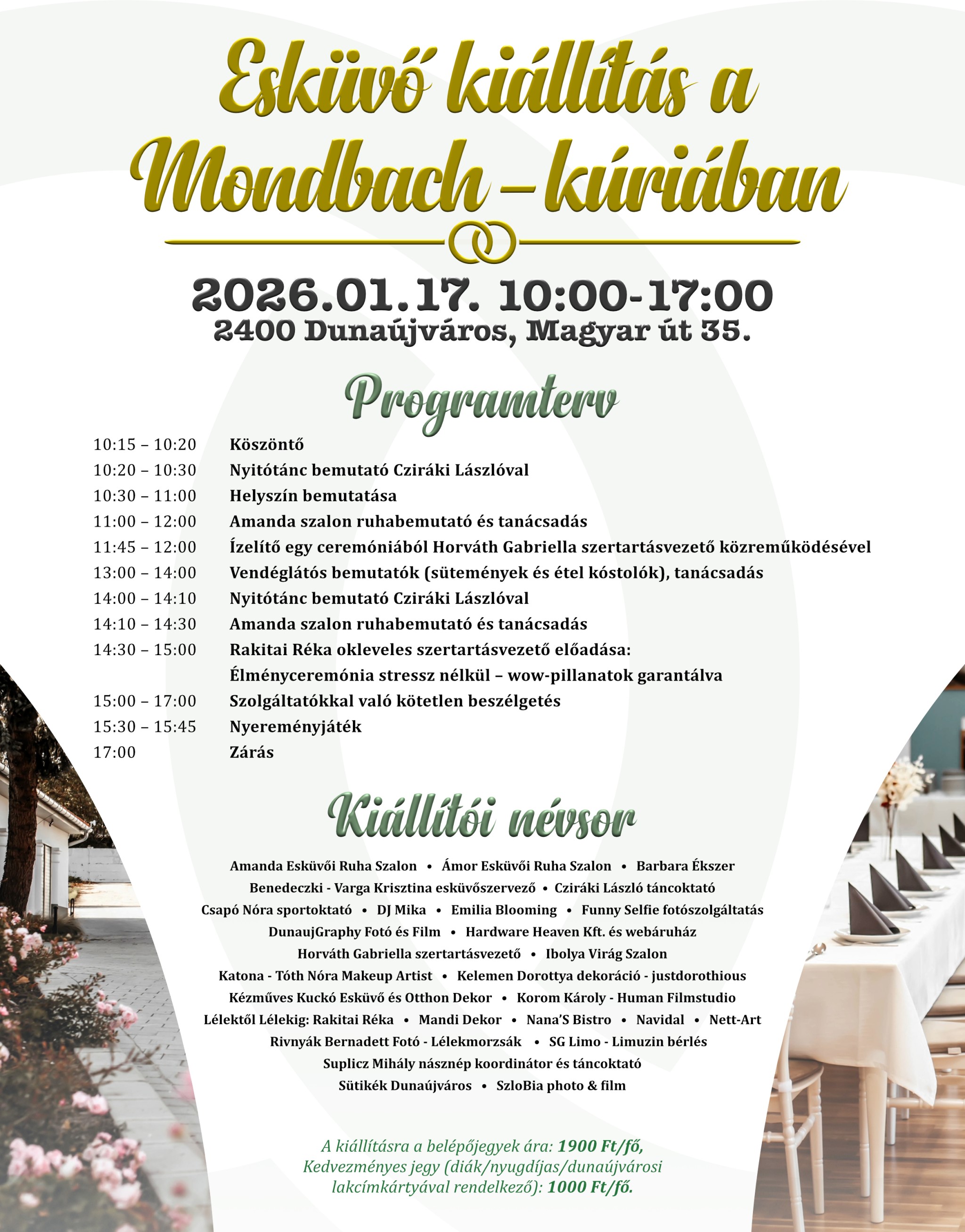 (A bérleti díj nem tartalmazza a szállítási és összeszerelési költséget, mely egyedileg kerül meghatározásra. Az ár nem tartalmazza a virágdekorációt.)