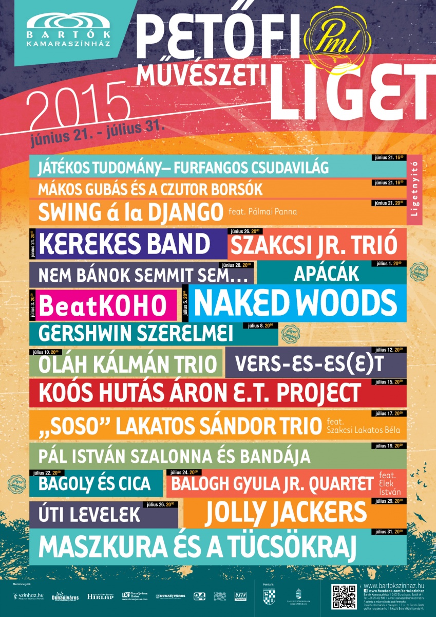 Az idén nyáron is benépesül a Petőfi liget városunkban. A Bartók Kamaraszínház Művészeti Liget névvel bő egy hónapos összművészeti „fesztivállal” gondoskodik a város polgárainak igényes nyári szórakoztatásáról. Változatos zenei programok, könnyed színházi estek, versek varázsolják el a ligetbe látogatókat. Ebben az évben is – Dunaújváros Megyei Jogú Város Önkormányzata jóvoltából és támogatásával – június 21-től július 31-ig heti három alkalommal (összesen 18 estén) várják az érdeklődő és szórakozni, kikapcsolódni vágyó közönséget. A műfaji sokszínűség mellett továbbra is a jazz, a blues és a világzene legjobbjai között válogattak. Több dunaújvárosi, vagy városunkból elszármazott fellépőt köszönthetünk az idén is (Jolly Jackers, Naked Woods, Beat Koho.). Újdonságként negyedik helyszín is jelentkezik a programban, négy koncertre a Művész Presszó teraszán kerül sor. A színházi előadások- jellegüknél fogva- a színházteremben kerülnek megrendezésre, és ezek az idén is színházjeggyel látogathatók.