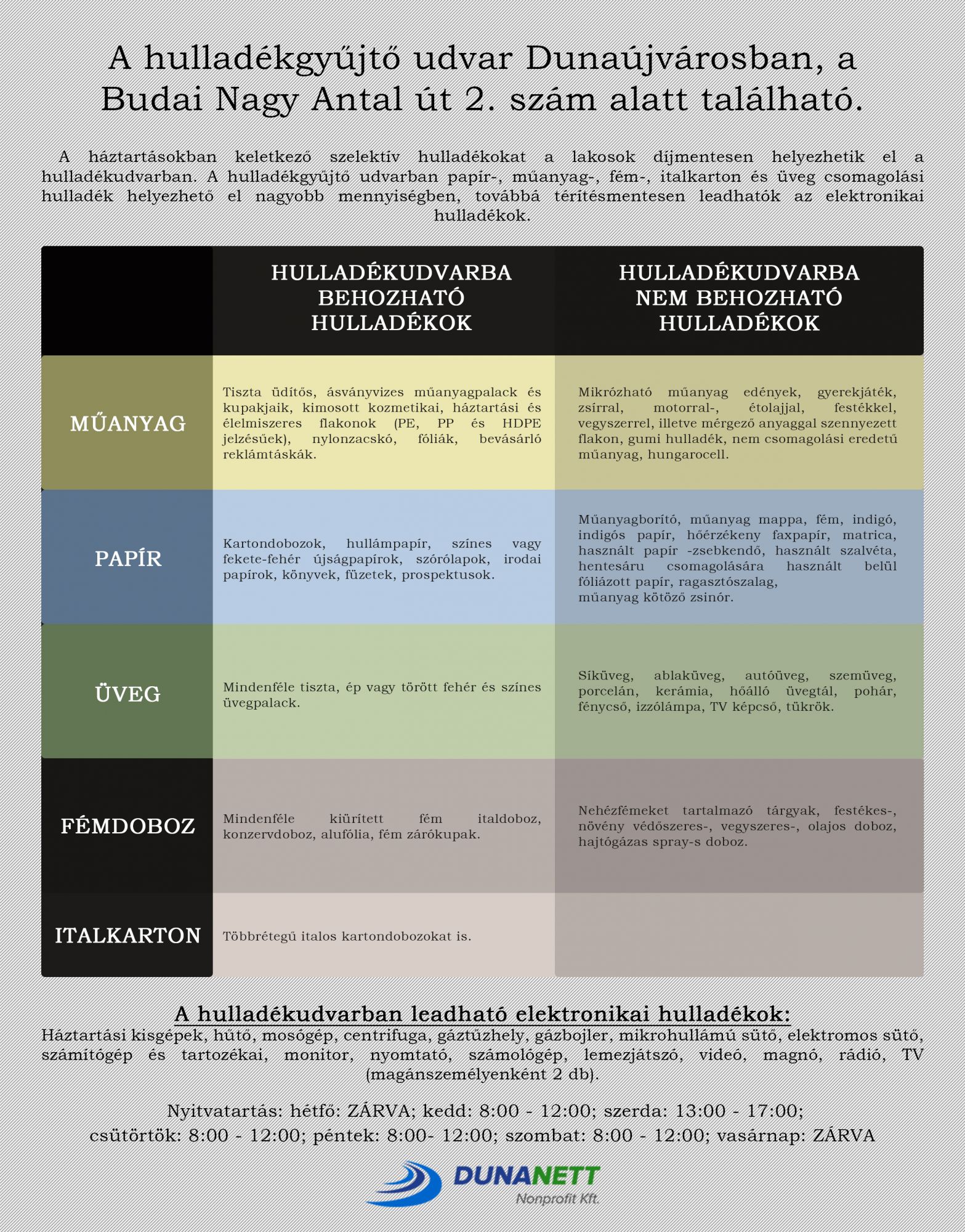 A szelektív gyűjtőszigetek mosásával és fertőtlenítésével folytatódik a város takarítása. Mezei Zsolt alpolgármester tájékoztatása szerint a munkához a DVG Zrt. alakított ki egy járművet, amivel a jövőben egyre több helyen találkozhatnak a dunaújvárosiak. A szelektíven gyűjtött hulladék leadására ismét rendelkezésre áll a Budai Nagy Antal úton található hulladékudvar is, ahol a megfelelő óvintézkedések betartásával (pl. szájmaszk és kesztyű kötelező viselése) adható le a hulladék.