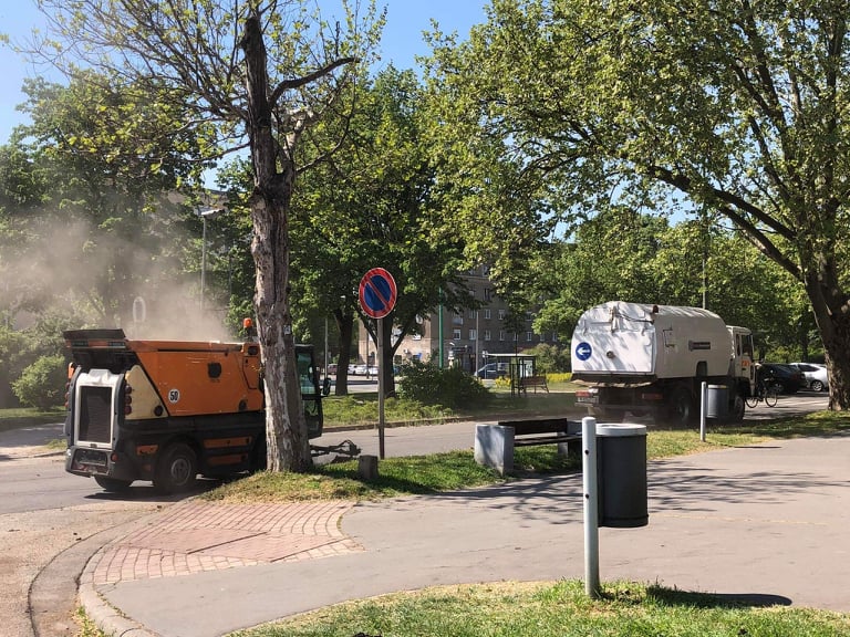 Több, mint egy hónapja minden nap járja a város útjait egy nagy teljesítményű takarítógép. Többen is szóvá tették, hogy a gép csak felveri a port. Természetesen egy ilyen takarítás mindig „porolással” jár, de arról szó sincs, hogy a gép csak arréb söpri a koszt. Ez azért tűnhet így, mert hosszú évek szemetét kellett feltakarítani a szegélyek mellől, ami elsőre biztosan nem sikerült. Egy szakaszon kétszer-háromszor végig kell mennie a gépnek, hogy mindent össze tudjon szedni.