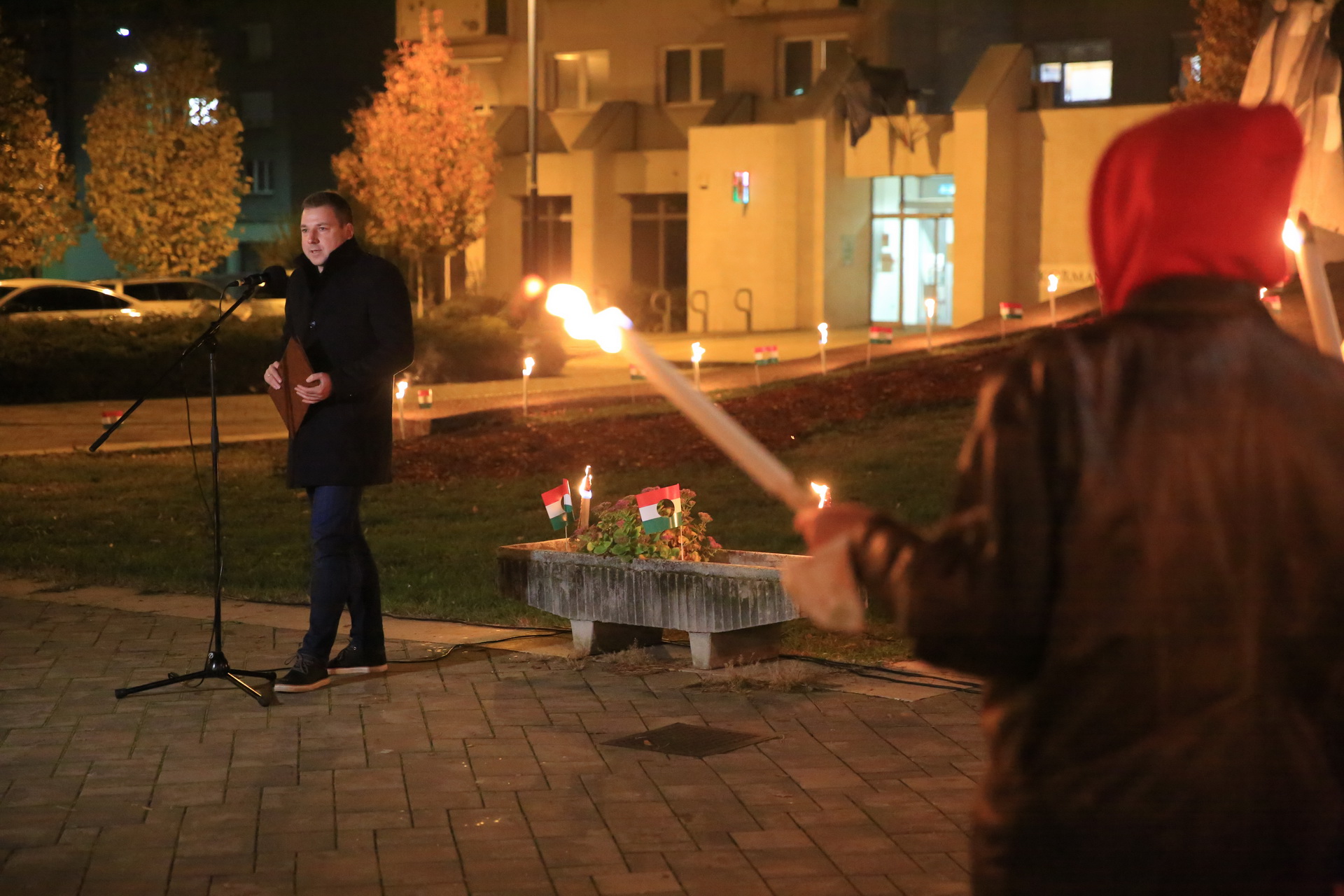 Baltási Nándor szavai után újabb torokszorító népdal következett Németh Irma tolmácsolásában, majd a Szózat közös eléneklését követően a részvevők az emlékműnél helyezték el fáklyáikat – szimbolikus gesztussal tisztelegve a hősök emléke előtt.