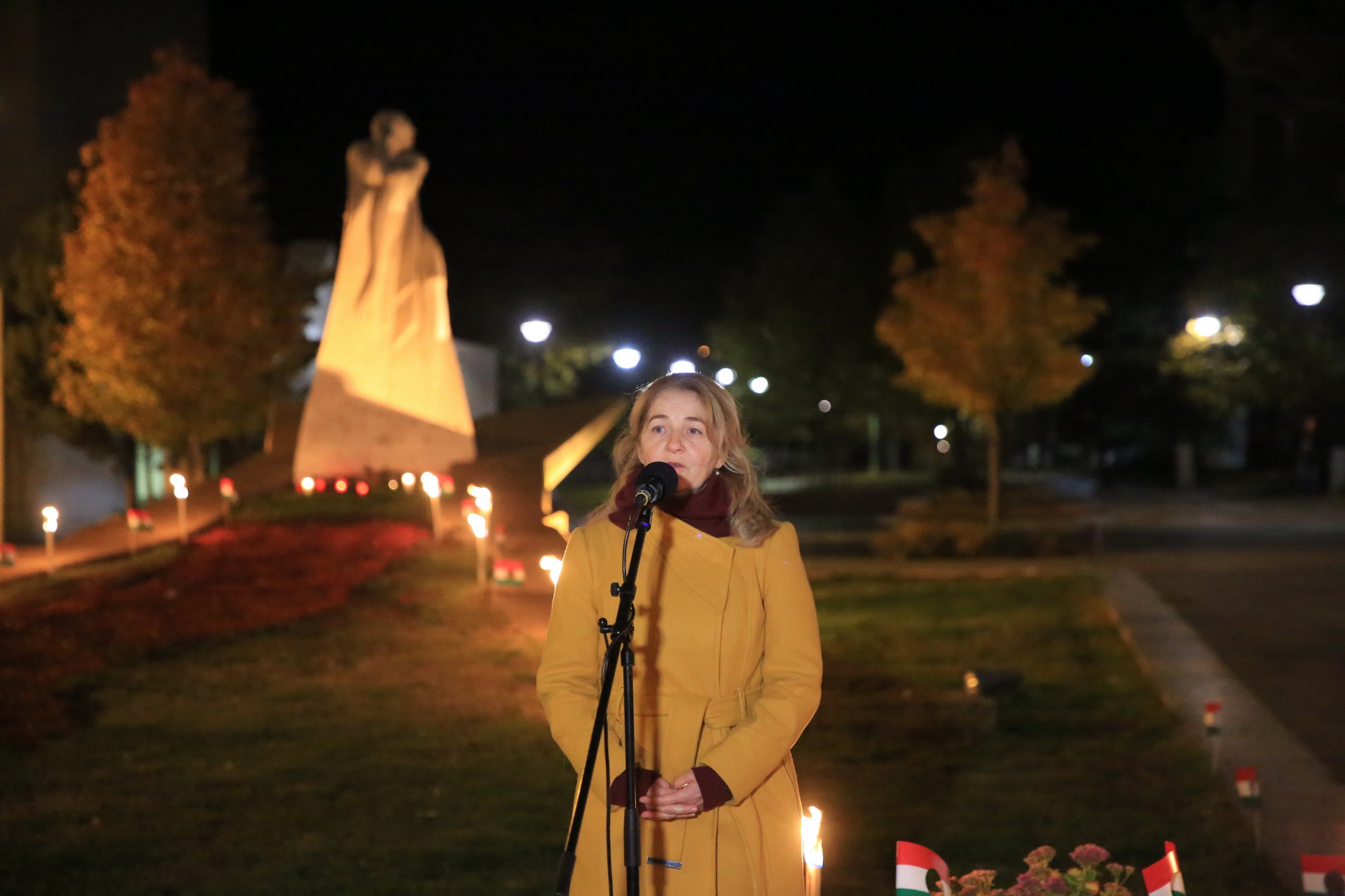 A Himnusz hangjai után Barta Endre humán ügyekért felelős alpolgármester mondott emlékbeszédet, felelevenítve a sorfordító napok máig ható eseményeit is: