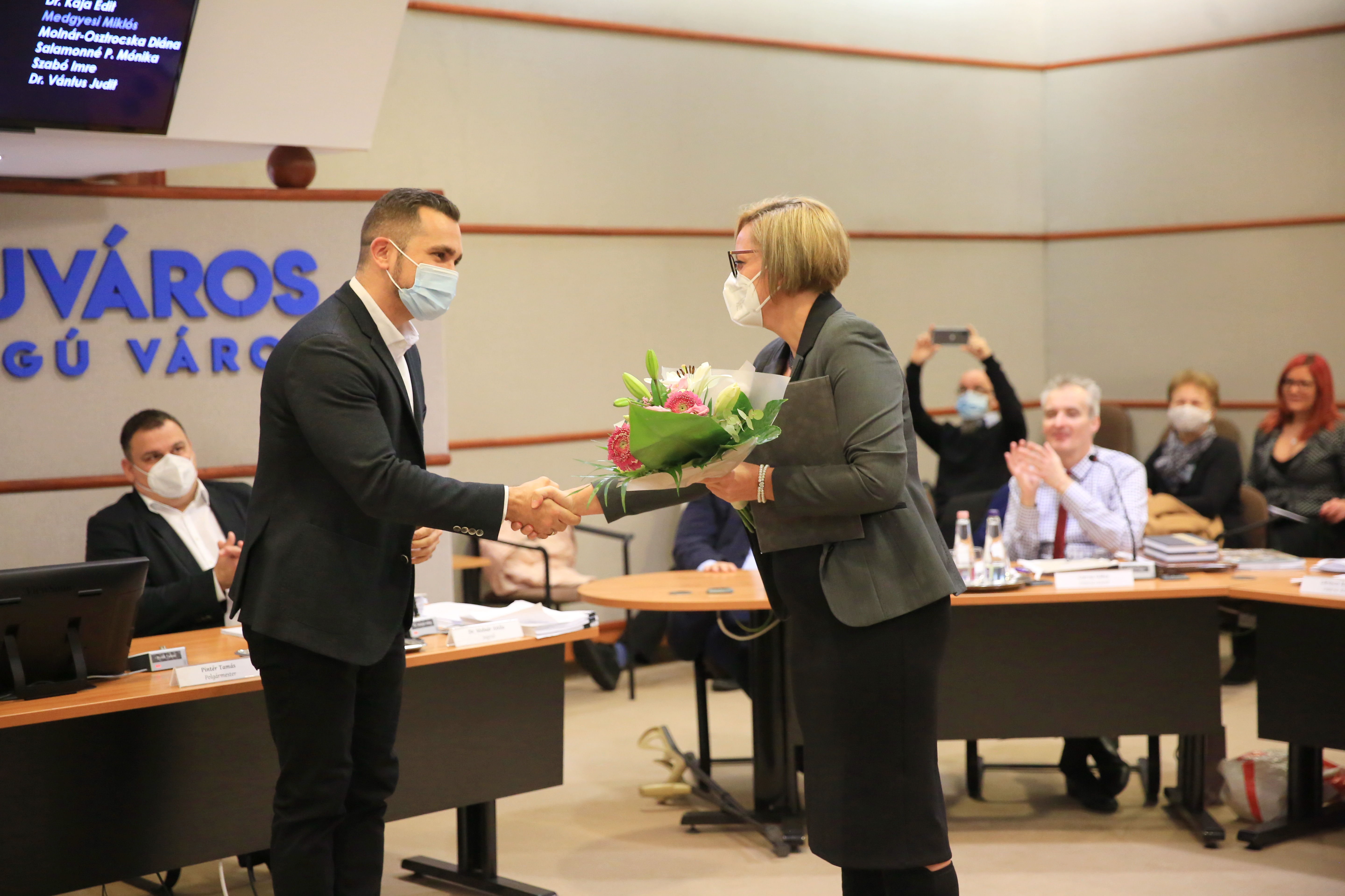 A díjazott Pintér Tamás polgármestertől vette át az elismerést, a díjátadót követő pohárköszöntő során Barta Endre humán ügyekért felelős alpolgármester mondott köszönetet az ESZI teljes kollektívájának – kiemelten az járványveszély időszakában nyújtott odaadó és áldozatos munkájukért. Gratulálunk a díjazott vezetőnek és az ESZI csapatának.