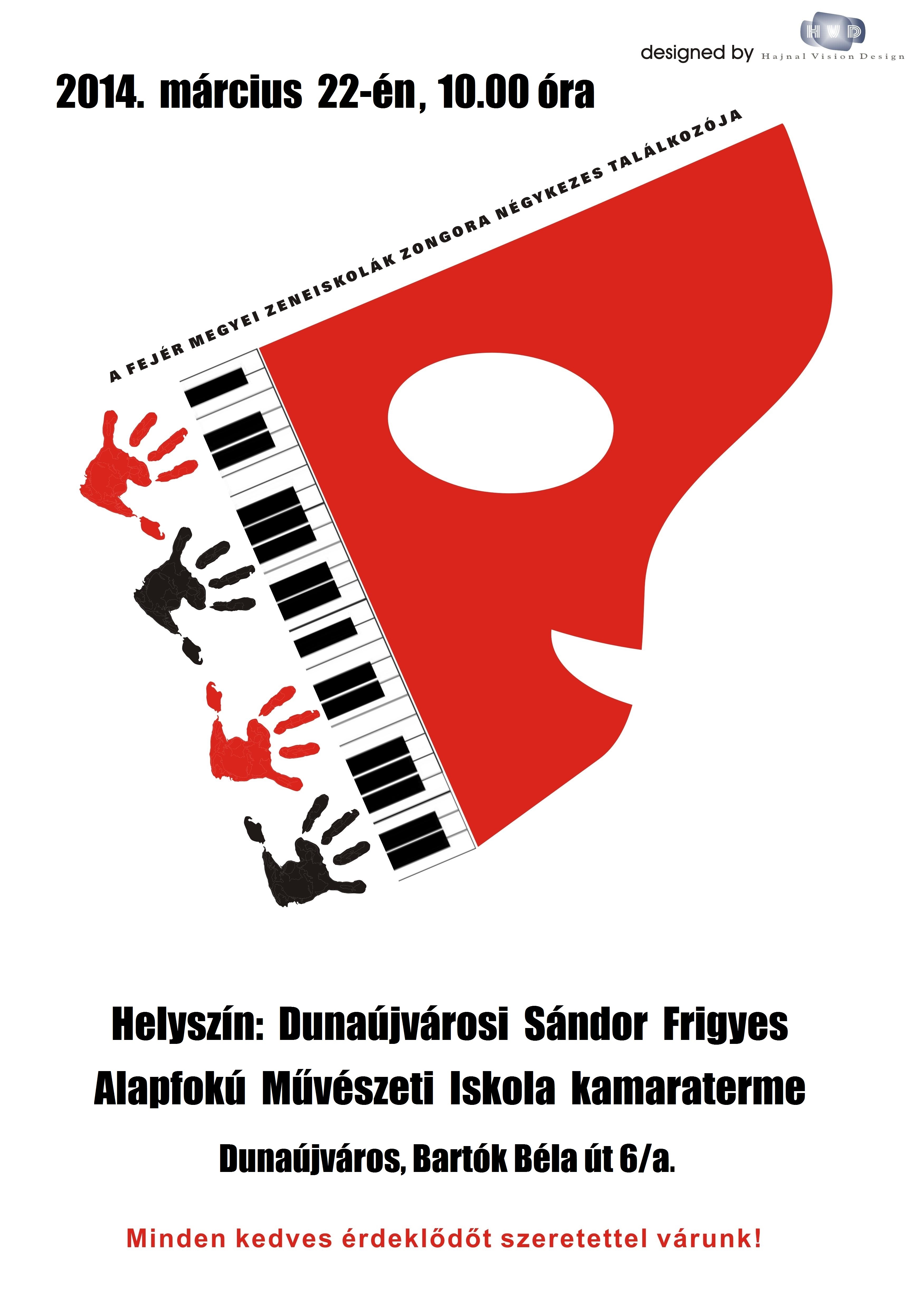 Sok szeretettel várnak minden kedves érdeklődőt a Sándor Frigyes Zeneiskolában 2014. március 22-én szombaton 10:00 órakor a Fejér Megyei Zeneiskolák Zongora Négykezes Találkozójára!