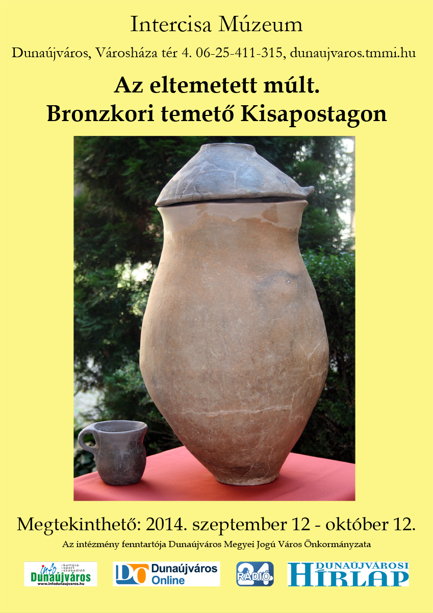 Az Intercisa Múzeum sok szeretettel vár minden kedves érdeklődőt „Az eltemetett múlt – Bronzkori temető Kisapostagon” című kiállítására! Megnyitó: 2014. szeptember 12., péntek 17.00 óra Megnyitja: Dr. Pásztor Emília régész, csillagász Helyszín: Intercisa Múzeum. I. emelet 2400 Dunaújváros, Városháza tér 4. Megtekinthető: 2014. szeptember 12. – október 12. között Bővebb felvilágosítás kérhető a 25/411-315 és 25/408-970 telefonszámokon, illetve: Mail: intercisamuz@gmail.com Web: www.dunaujvaros.tmmi.hu Kisapostag határában már a múlt század 30-as éveiben is folytak kisebb ásatások, de nagy felületet érintő, részletes feltárásra csak az M8-as autópálya építése kapcsán kerülhetett sor. 2004 nyarán a település határában megelőző feltárások zajlottak, az egyik a 6. sz. főút körforgójától nyugatra eső területen, Kisapostag-Kenderesen. A múzeumban megrendezett kiállítás az itt előkerült bronzkori temető leletanyagát mutatja be.